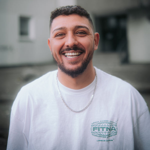 Abdul ist 190cm groß und trägt Größe XXL. Ein passendes Shirt flach hinlegen und von Achsel zu Achsel messen. Dieser Wert x2 ergibt den Umfang A.