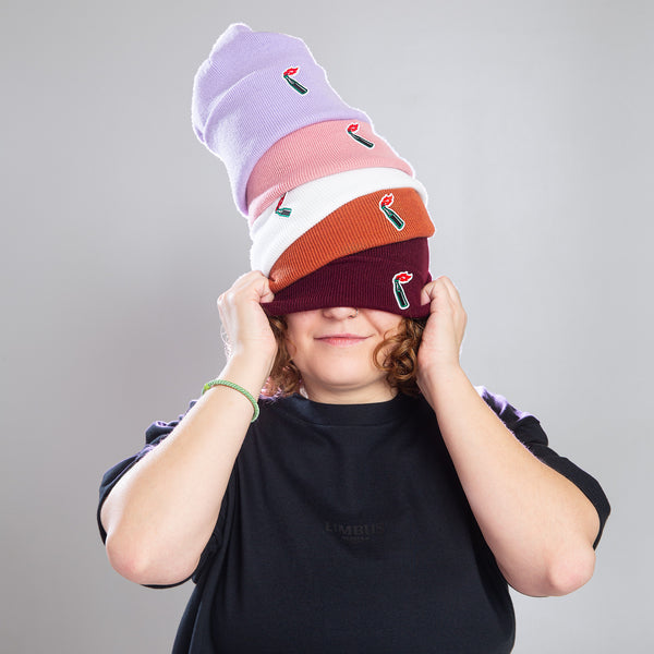 Diese Flamme in unseren Herzen ist immer da, genauso wie die Bereitschaft diese bei Bedarf zu teilen! Strickmütze mit dem Molli Patch. Beanie in Schwarz, Olive, Burgund / Weinrot / Maroon, Grau meliert, Rosa, Bronze, Fluorescent Pink, Weiß und Lavender.